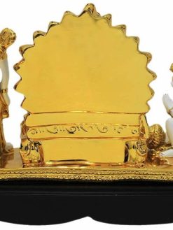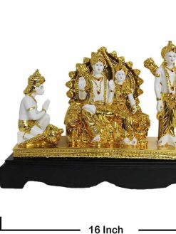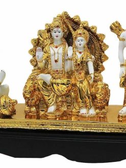 | This Decorative Gold Plated Ram Darbar Statue consisting of Lord Rama, Sita ji, Lord Hanuman ji and Lakhsman can be used as Pooja Mandir Interior Decoration Accessories / Table Decor Items or Showcase Decoration. As per VASTU Mythology Religious Spiritual Idols Showpieces Placed in North East Direction of Drawing / Living & Pooja Room , brings Wealth , Health , Peace & Happiness Among The Home Members. |
