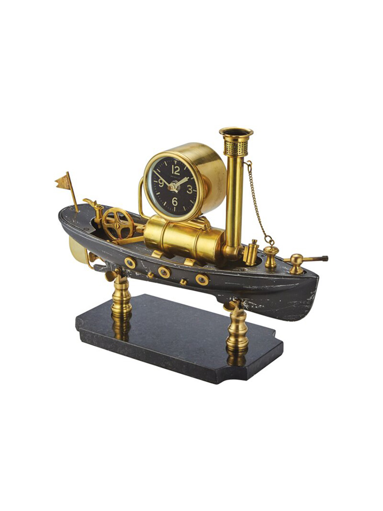 Luxury Table Clock with 18k Gold Plating | Steam Boat Design