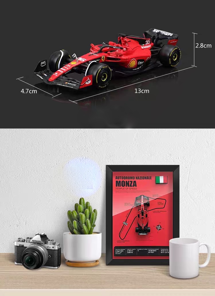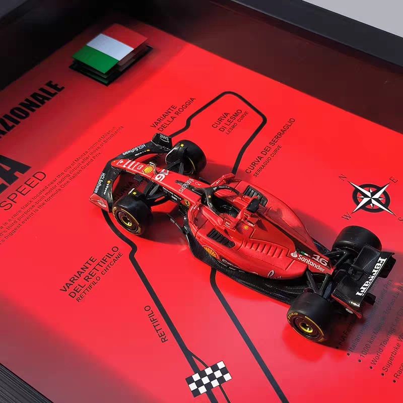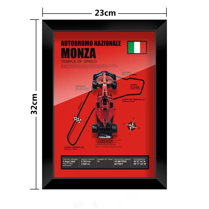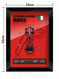 | Celebrate the legacy of Formula 1 racing with this stunning framed poster of Italy’s legendary Autodromo Nazionale Monza circuit, featuring a detailed 3D model of a Ferrari F1 car. The Monza Circuit also known as the “Temple of Speed” for its long straights and high-speed corners, delivers unmatched racing thrills. This artwork is a perfect blend of motorsport history and sleek modern design—ideal for F1 fans, collectors, and Ferrari enthusiasts looking to elevate their space with a bold tribute to Italian racing excellence. | |